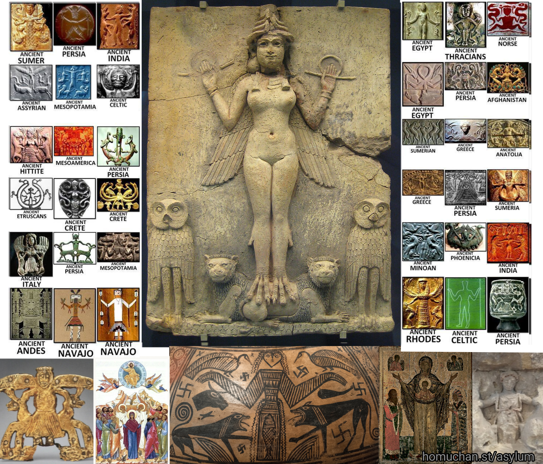 Зафиксирован эмпирический факт, не находящий объяснения в рамках линейной историографии: в семиотическом поле древних культур, разделённых веками и тысячами километров, возникает идентичный иконографический комплекс! Отсутствие каких-либо свидетельств о прямых контактах между многими из этих цивилизаций, делает гипотезу культурного заимствования практически несостоятельной.