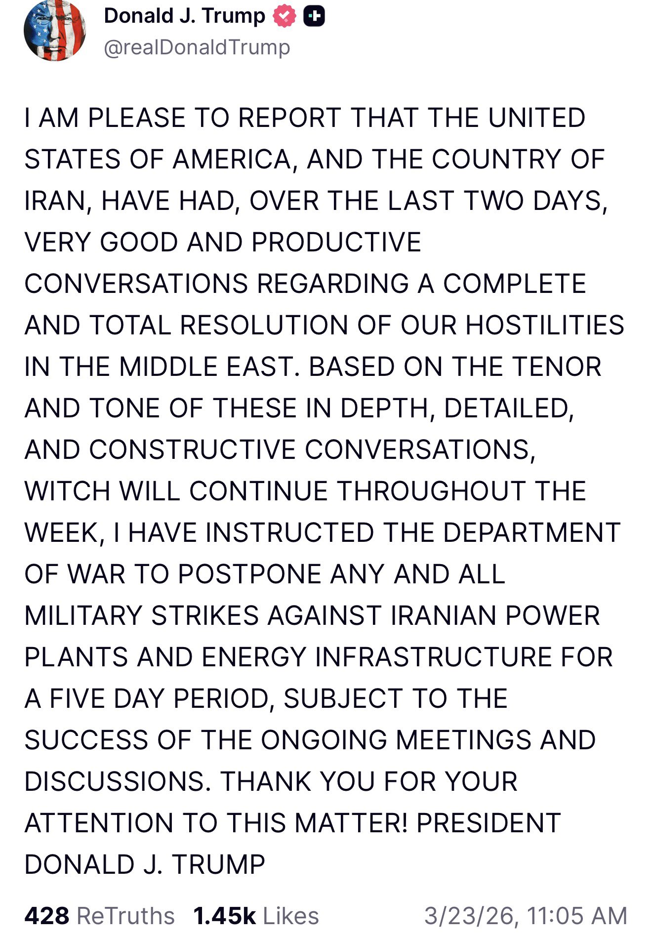 blump 'postponing' iran strikes lul