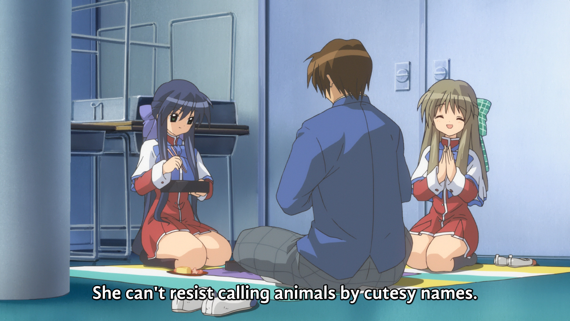 >yuuichi asking girls for a dress to wear